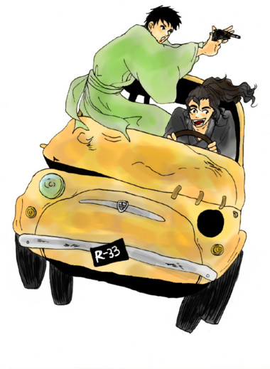 車の龍馬さんと晋作さん。ルパンな車です。