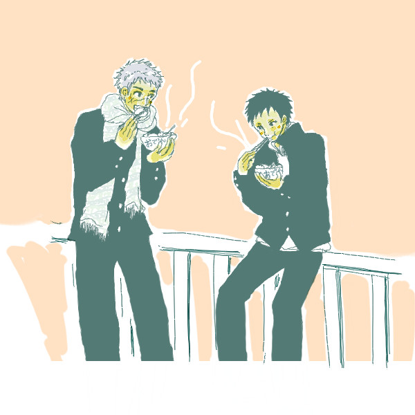 学校帰りの学生晋作&モンモン。冬場のコンビニおでんは絶品ですね!安いし旨いしあったかい。