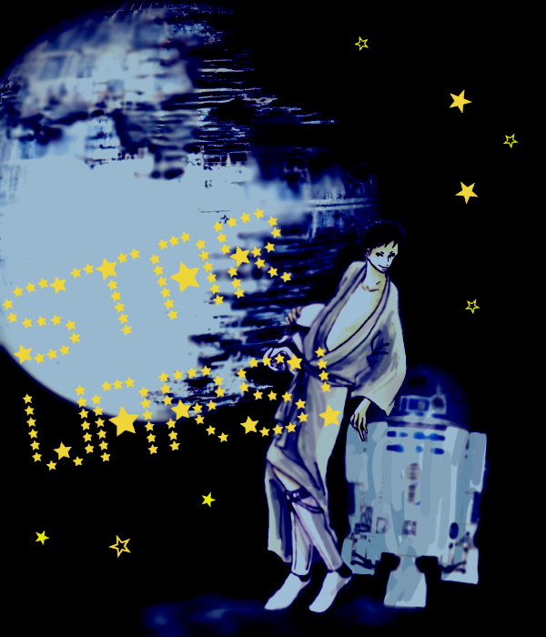 宇宙の彼方からこんにちは。R2D2とデススターと晋作。